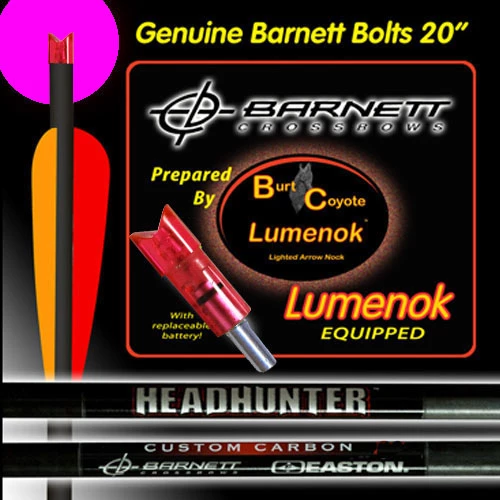 Lumenok equipped Barnett Headhunter Bolts are designed to allow crossbow shooters to see bolt flight.